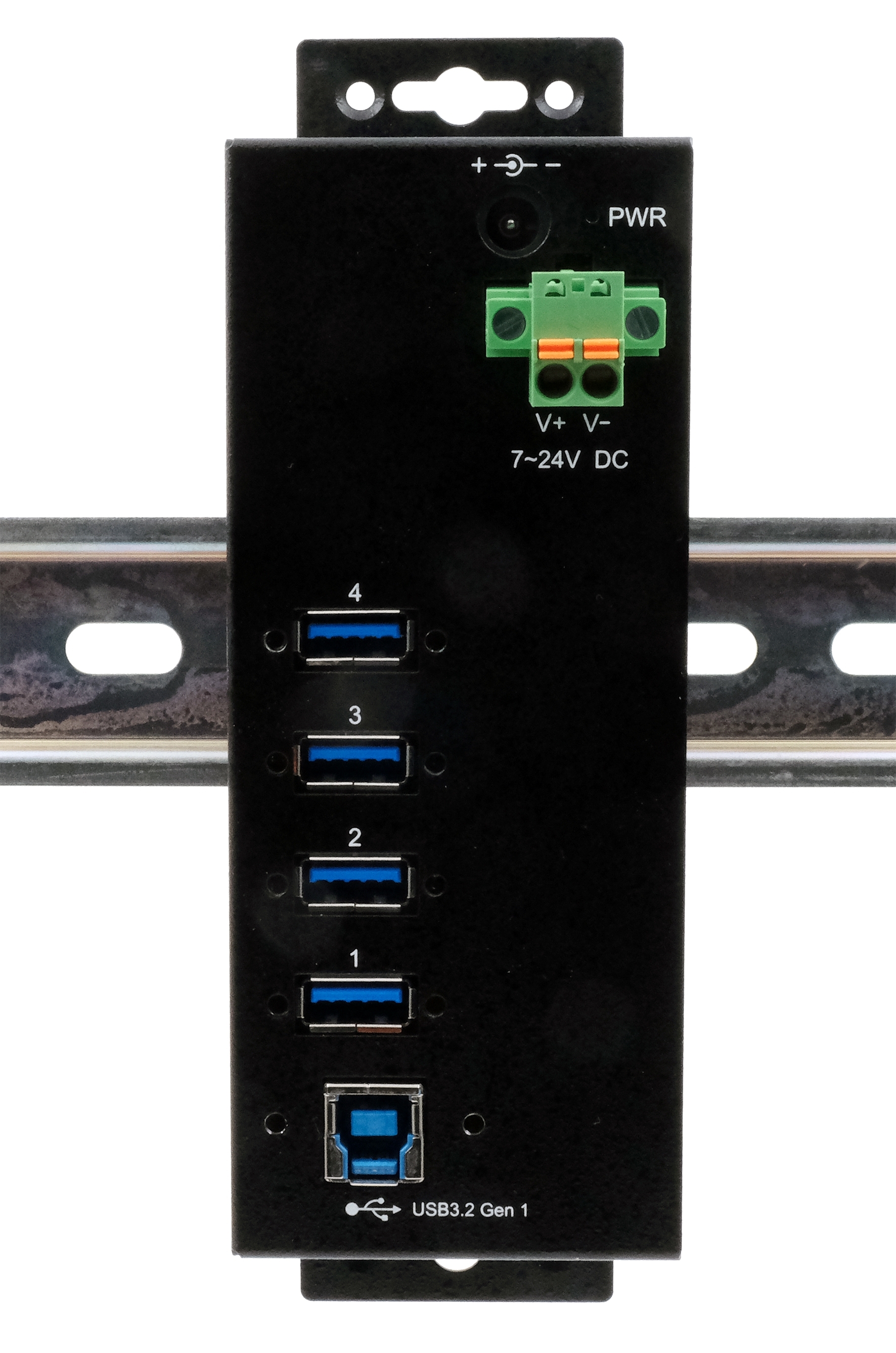 4 Port USB 3.2 Gen 1 HUB mit 15KV ESD Überspannungsschutz (DIN-Rail Kit)