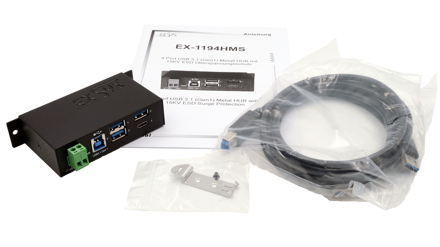 EX-1194HMS, USB 3.2 Gen 1 Kabel 1.5 m, DIN-Rail Kit, Handbuch
