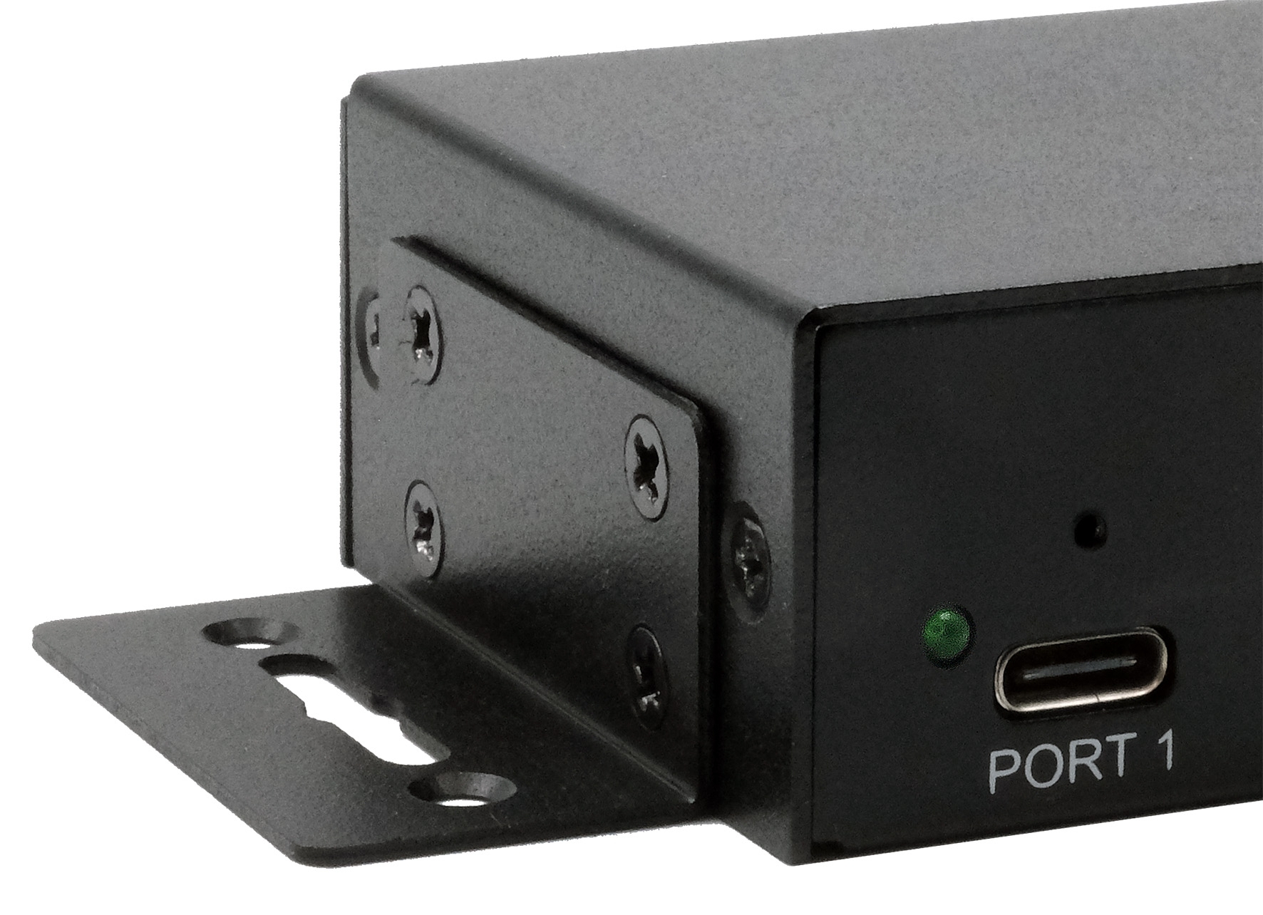 Der robuste, industrietaugliche EX-12294HMS ist ein USB 3.2 Gen 2x1 Metall HUB für bis zu vier Endgeräte, der an der Wand oder auf einer Hutschiene montiert werden kann. Er ist ein reiner USB-C HUB für vier Endgeräte und gewährleistet eine sichere Datenübertragung und eine exzellente Performance von bis zu 10Gbit/s (SuperSpeed USB 10Gbps). Zusätzlich ist der EX-12294HMS mit einem 15KV ESD Überspannungsschutz ausgestattet. Über das externe Netzteil können an jedem Port bis zu 3 A zur Verfügung gestellt werden. Dies ermöglicht das problemlose Laden von iPhone, iPad, Smartphone und Tablet.