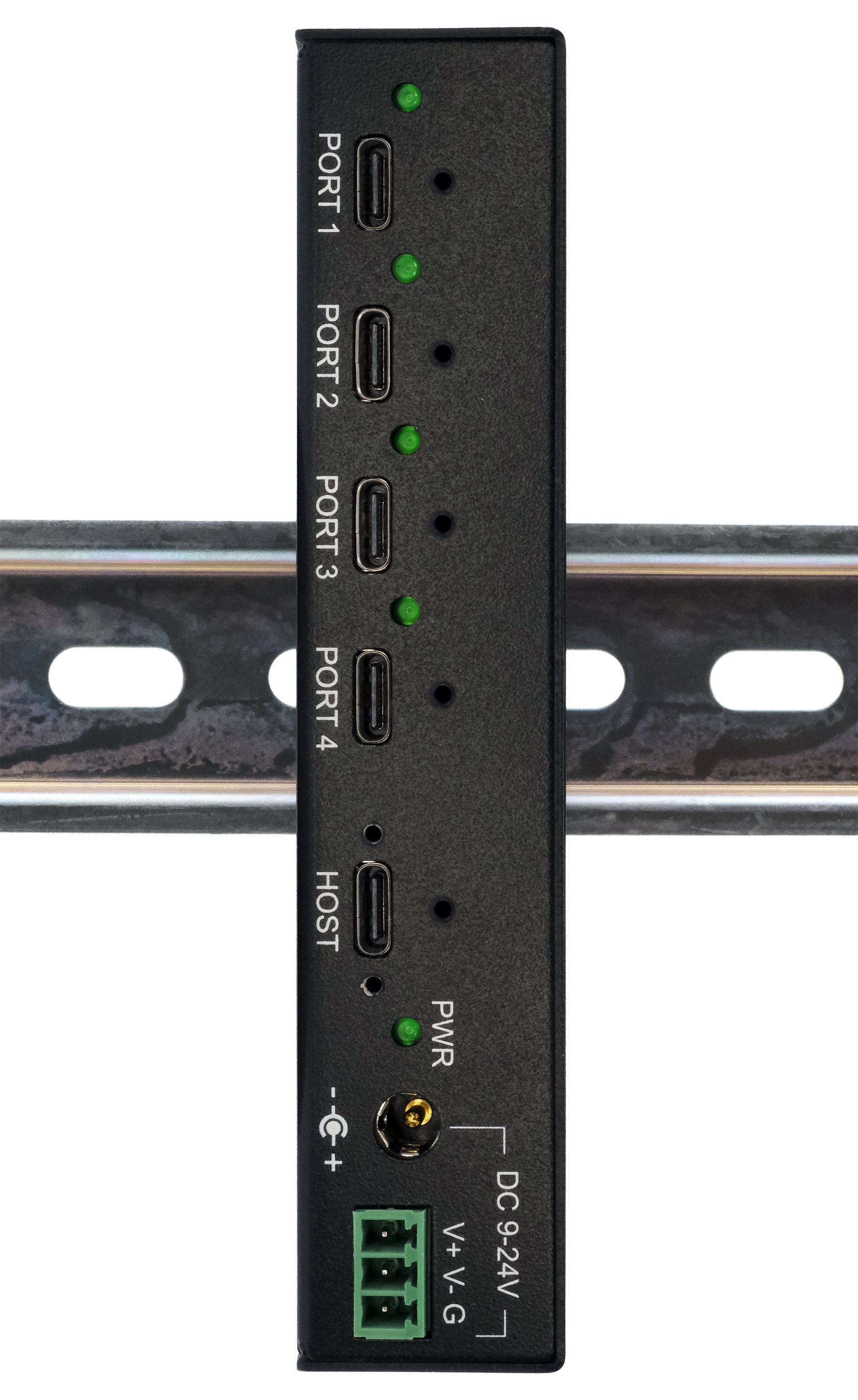 4 Port USB 3.2 Gen 2x1 Metall HUB mit 4x USB-C Ports für Tisch, Wand und DIN-Rail Montage