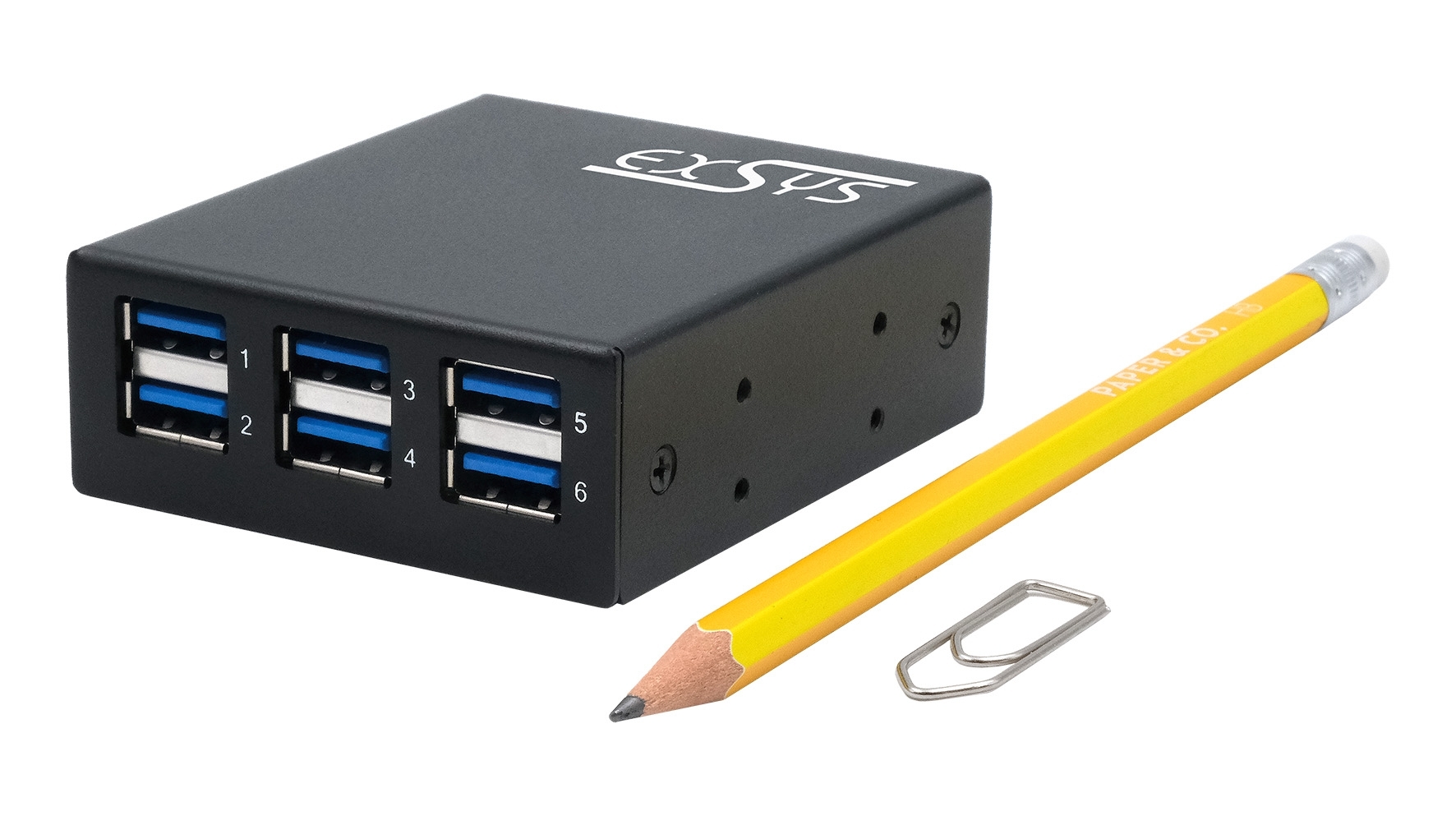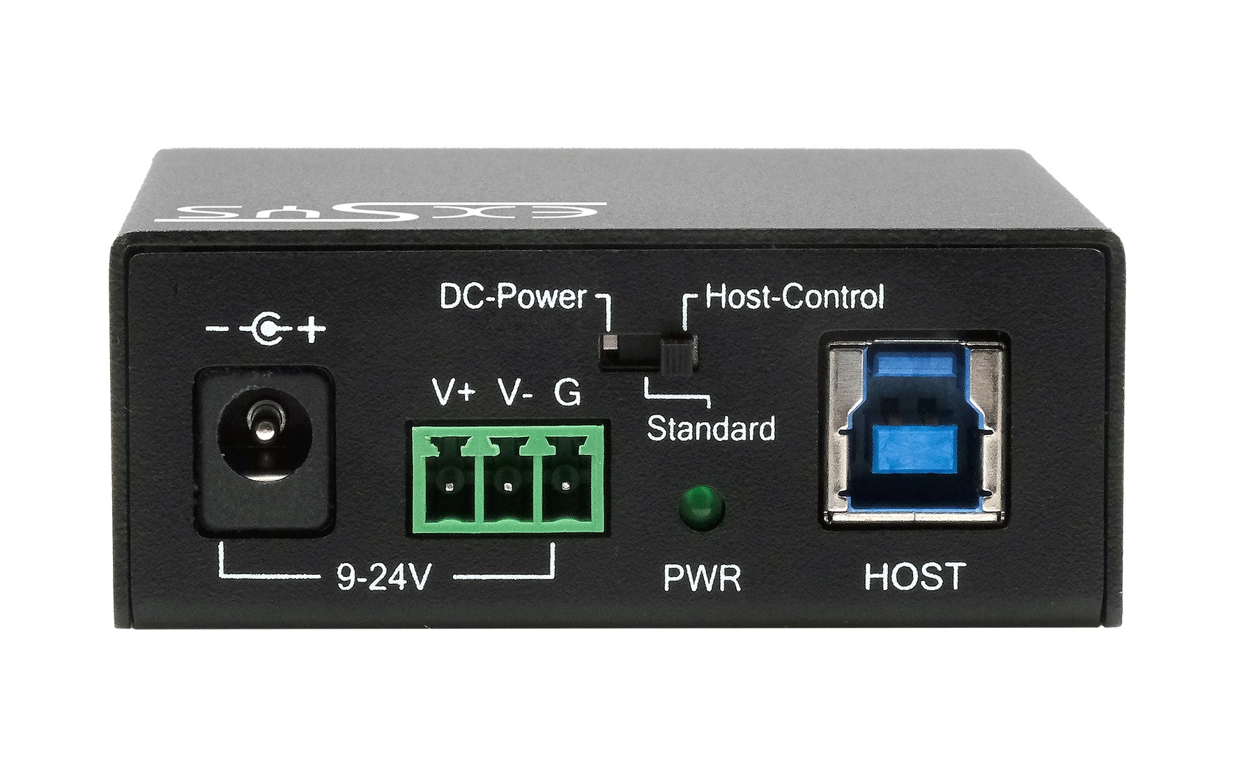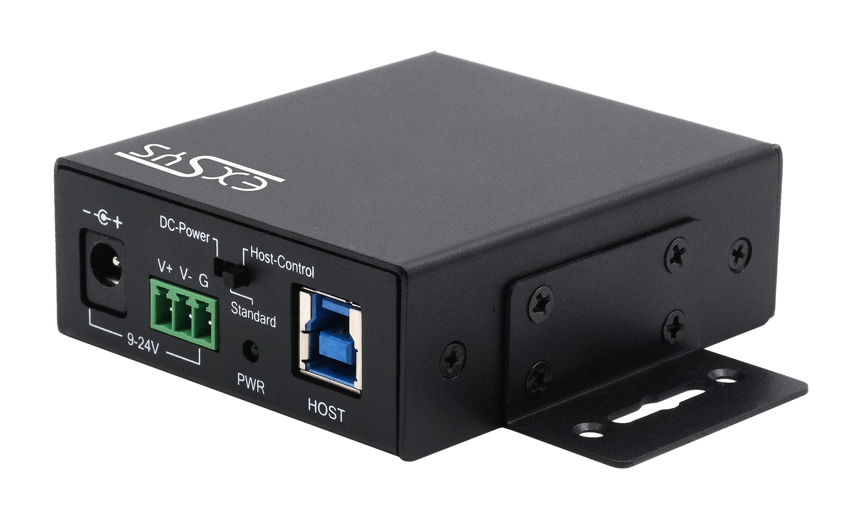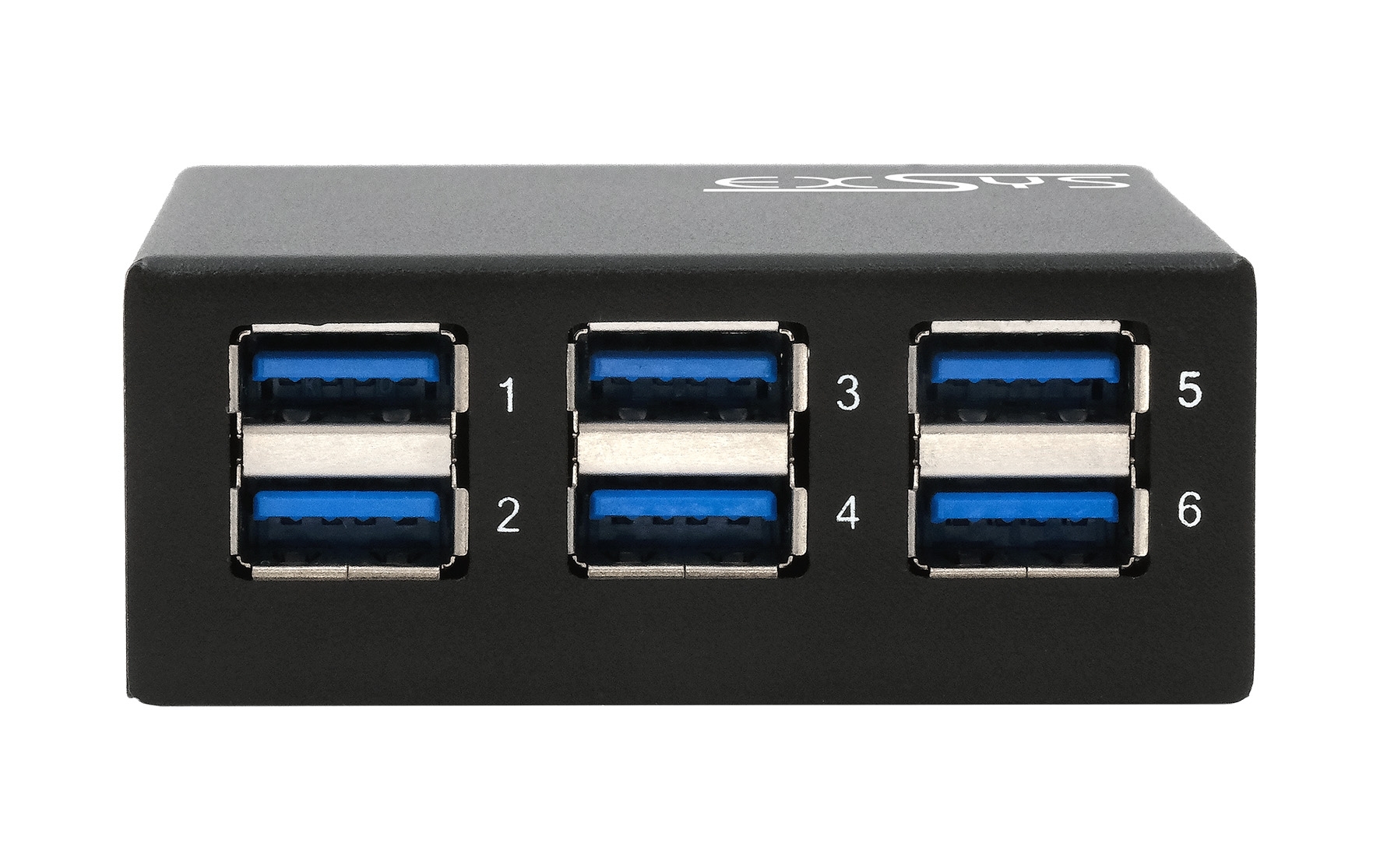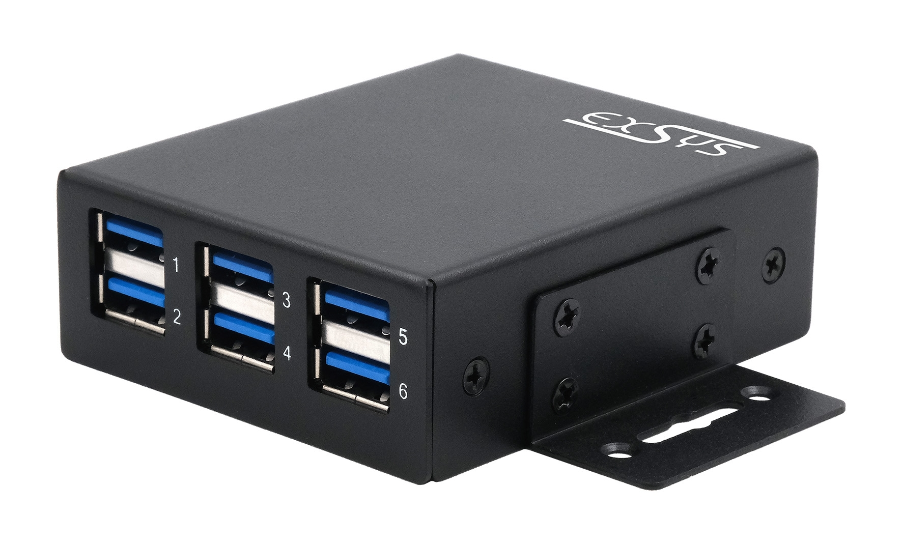Der robuste, industrietaugliche EX-11246HMS USB-Hub im Metallgehäuse mit sechs USB 3.2 Gen 1 Ausgängen kann an die Wand oder auch auf eine Trägerschiene installiert werden. Er gewährleistet eine sichere Datenübertragung und exzellente Performance von bis zu 5Gbit/s (SuperSpeed USB 5Gbps). Zusätzlich ist der EX-11246HMS mit einem 15KV ESD Überspannungsschutz ausgestattet. Über die externe Stromversorgung können an den Ports bis zu 2.4A zur Verfügung gestellt werden. Dies ermöglicht Ihnen ein problemloses aufladen von iPhone, iPad, Smartphone und Tablet. Die Einstellung der Stromversorgung kann mittels eines externen Schiebeschalters auf einfachste Weise während des Betriebs eingestellt werden.