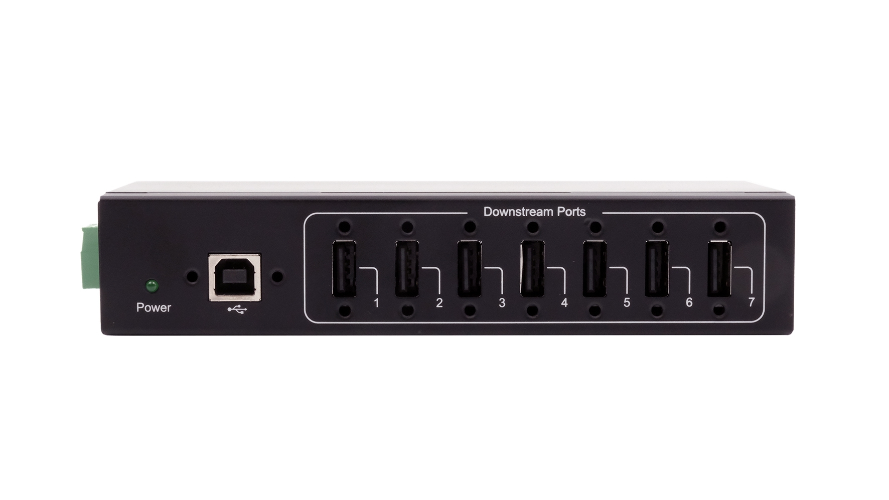 Der robuste, industrietaugliche EX-11217HMVS USB-Hub mit sieben verschraubbaren USB 2.0 Ausgängen ist für Consumer und Industrieanwendungen geeignet. Er kann an die Wand oder auch auf eine Trägerschiene installiert werden und wird an Computer, Notebook oder Server mit dem mitgelieferten USB 2.0 Kabel angeschlossen. Es wird die Hi-Speed USB 2.0 Datenübertragungsrate von bis zu 480 Mbit/s unterstützt und ist abwärtskompatibel bis USB 1.1.