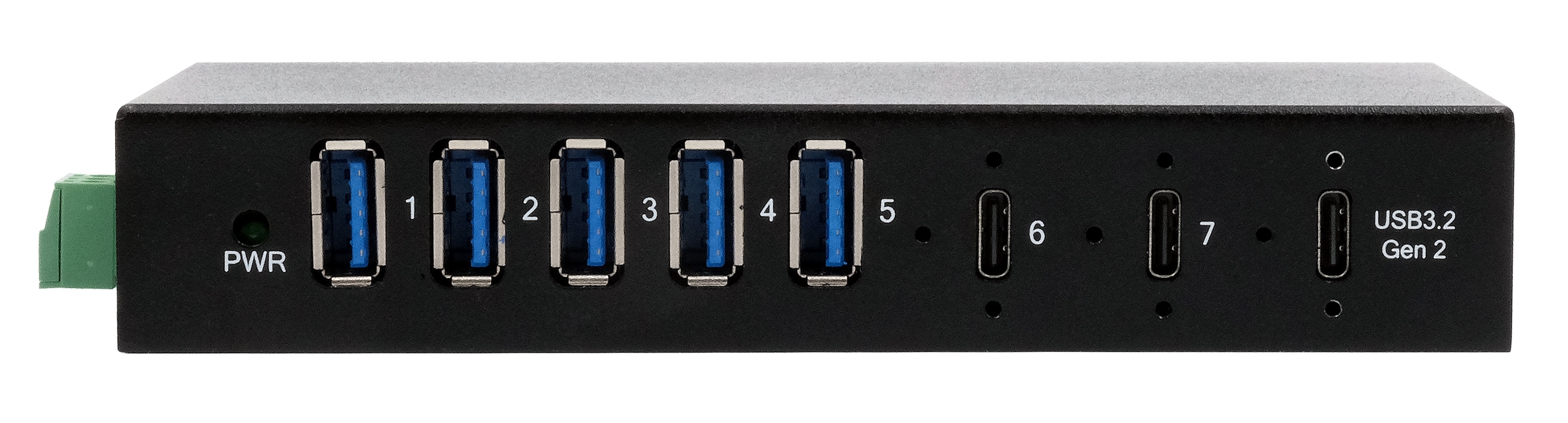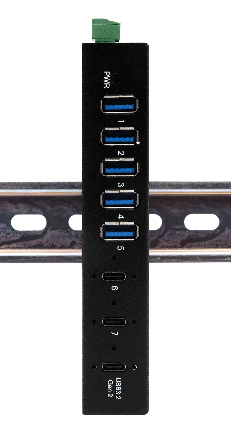 7 Port USB 3.2 Gen 2x1 Metall HUB mit 2x USB-C und 5x USB-A 3.2 Gen 1, für Tisch, Wand und DIN-Rail Montage