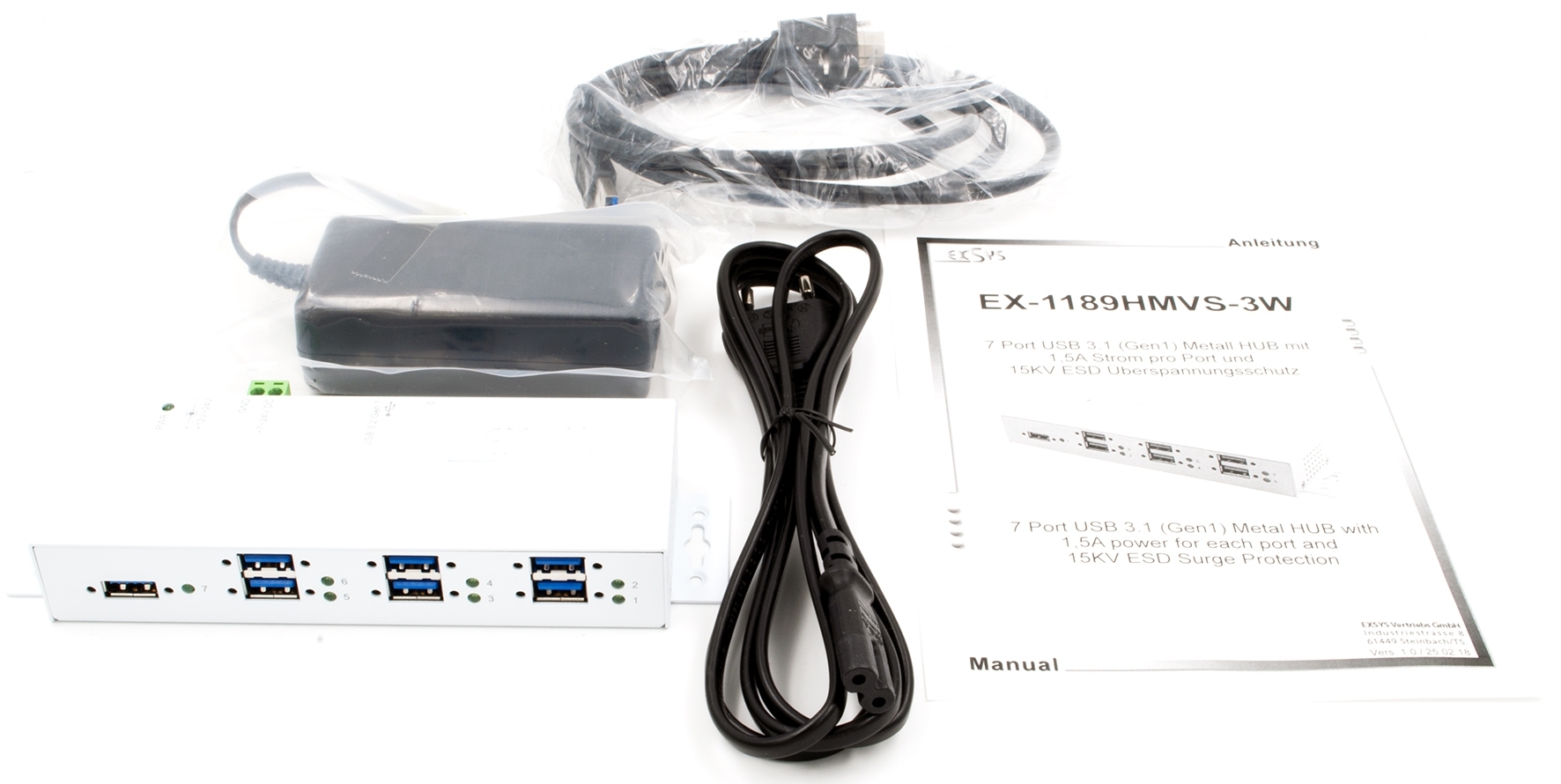 EX-1189HMVS-3W, USB 3.2 Gen 1 Kabel 1.5 m, Netzteil 12V/3A, Handbuch