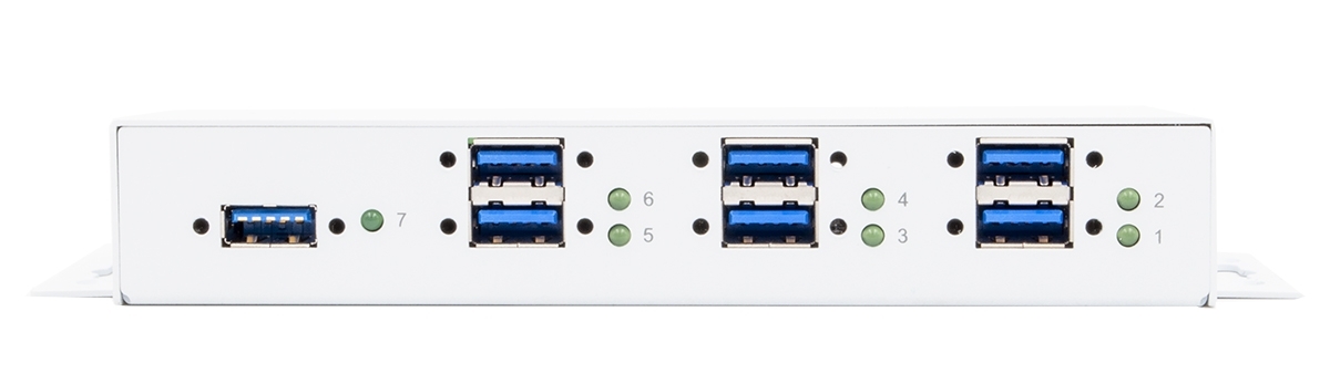 7 Ports USB 3.2 Gen 1 weiβer Metall HUB mit 15KV ESD Überspannungsschutz