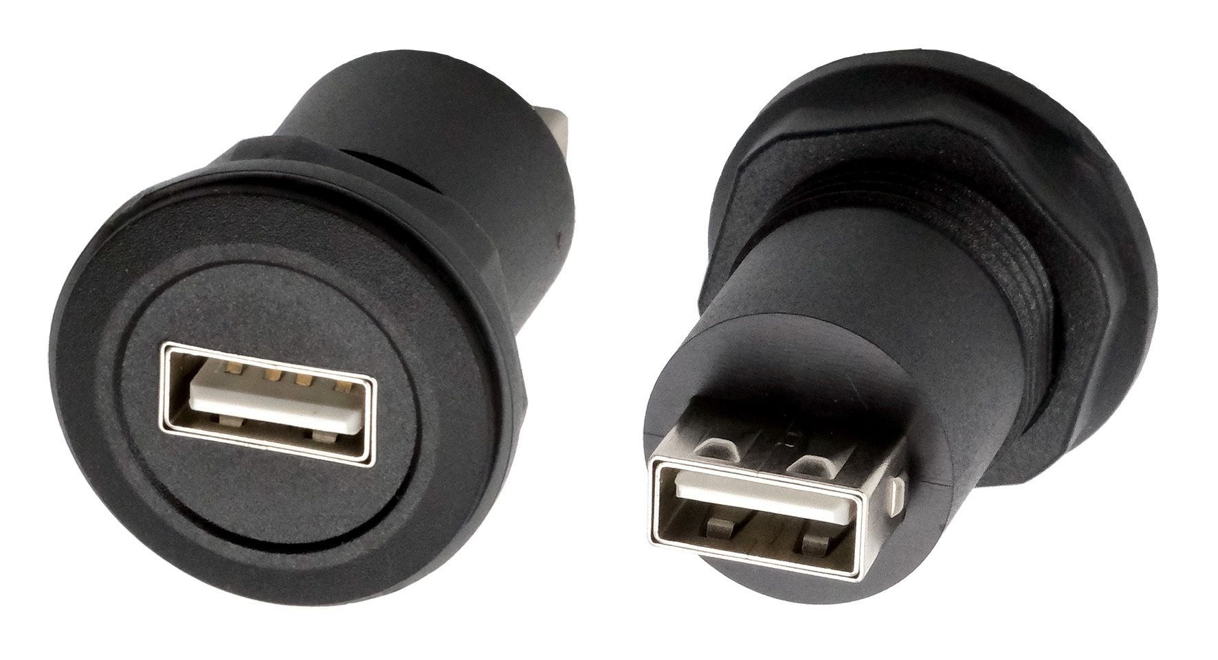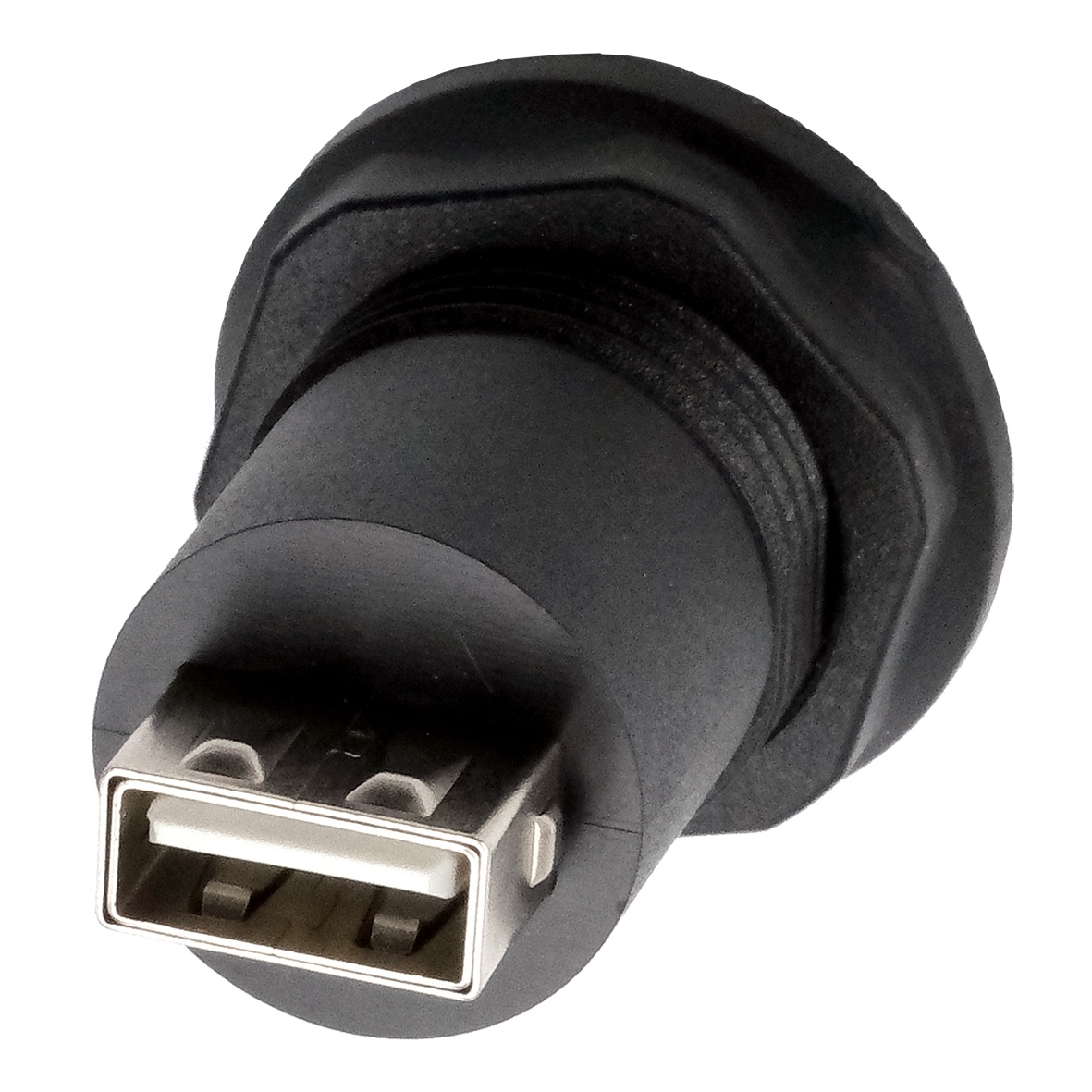 Der Einbau-Adapter kann in ein Panel oder Gehäuse mit einer Standard-Bohrung von 22.3 mm (bis max. 24 mm) eingebaut werden. Er wird dank integriertem Gewinde direkt an der Blende fixiert und ist ideal geeignet um beispielsweise die Anschlüsse von digitalem Equipment einfach zugänglich und übersichtlich an einer Frontblende anzubringen.