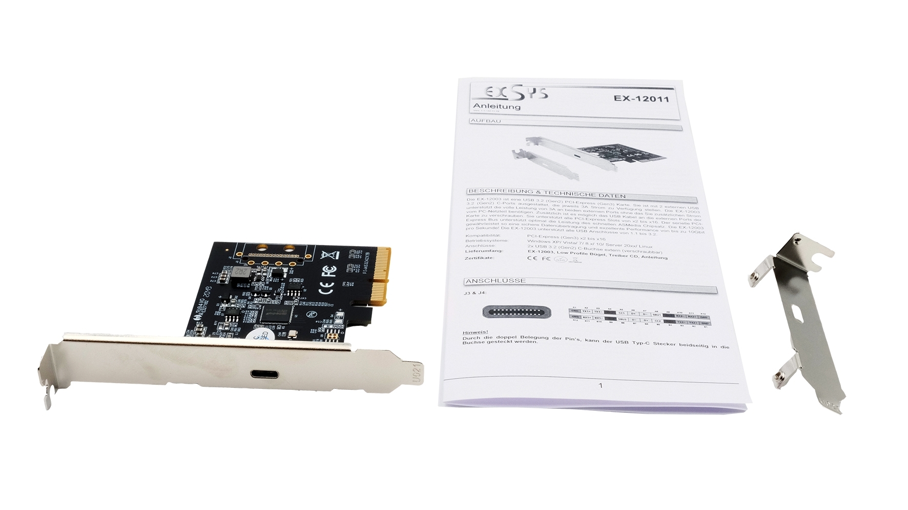The EX-12011 USB 3.2 Gen 2x2 with PCIe Slot (x4) card provides an external SuperSpeed USB 3.2 Gen 2x2 port with USB-C connector. It supports USB 1.1 low-speed (1.5Mbps), full-speed (12Mpbs), USB 2.0 high-speed (480Mbps), USB 3.0 SuperSpeed (5Gbps), USB 3.2 Gen 2x1 SuperSpeed (10Gbps) and USB 3.2 Gen 2x2 SuperSpeed (20Gbps). It is the perfect technology for external storage enclosures, digital cameras, webcam, scanner and more. The EX-12011 supports 2.4A power on the external USB-C port. A low profile bracket is included with the EX-12011 for use with slim enclosures up to a maximum height of 8cm.