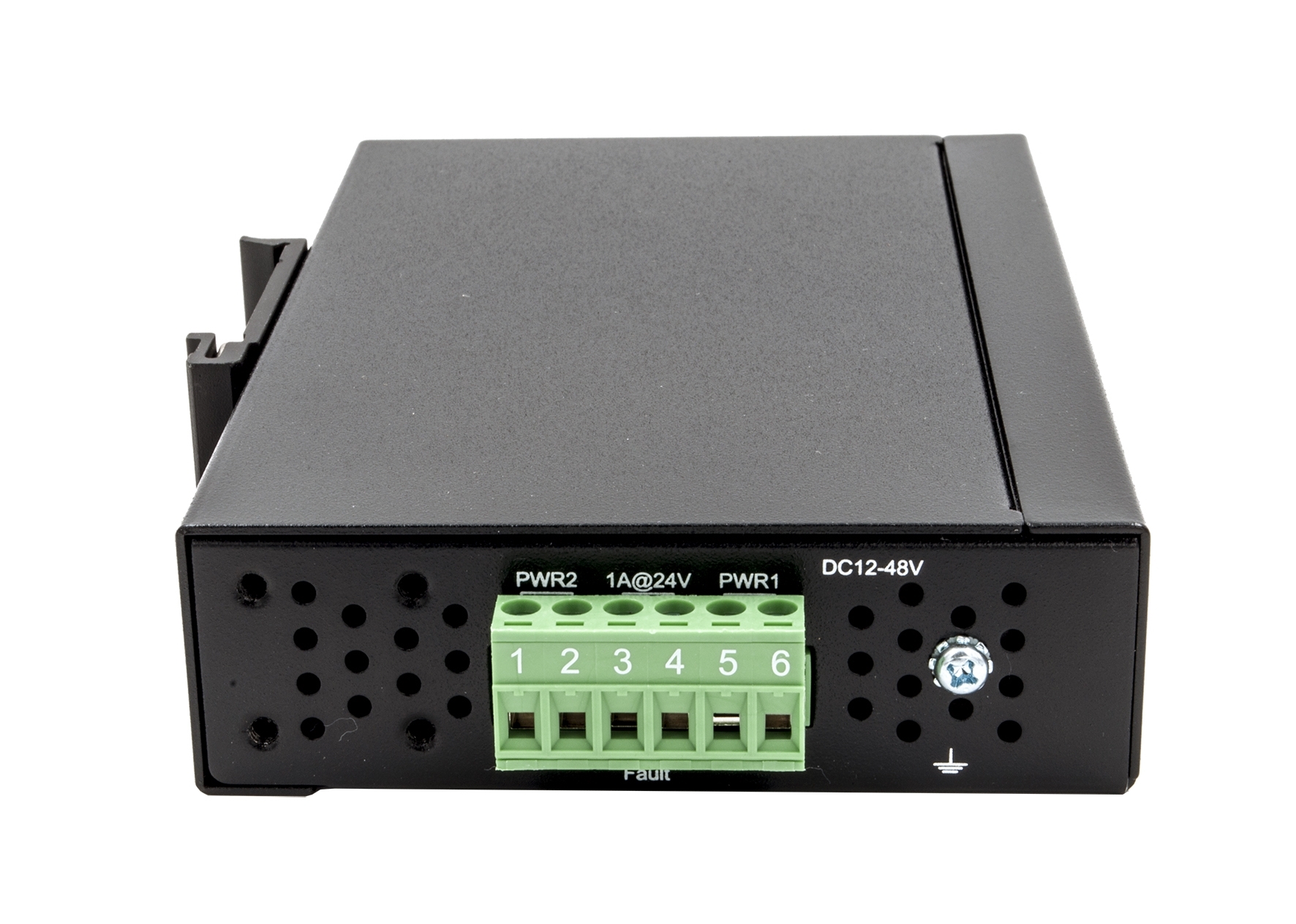 The EX-6201 is an industrial 5-port Ethernet unmanaged switch in a metal housing. It offers increased operational reliability thanks to the redundant power supply of 2x 12V - 48VDC via a terminal block.