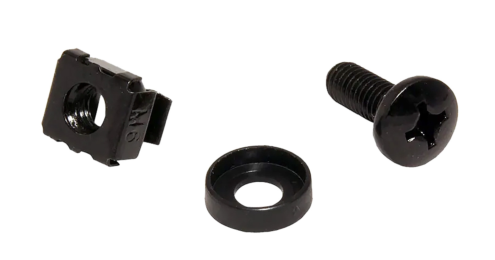 4x pan-head screw M6 x 16, galvanised, 4x plastic washer, black, 4x cage nut M6, galvanised.