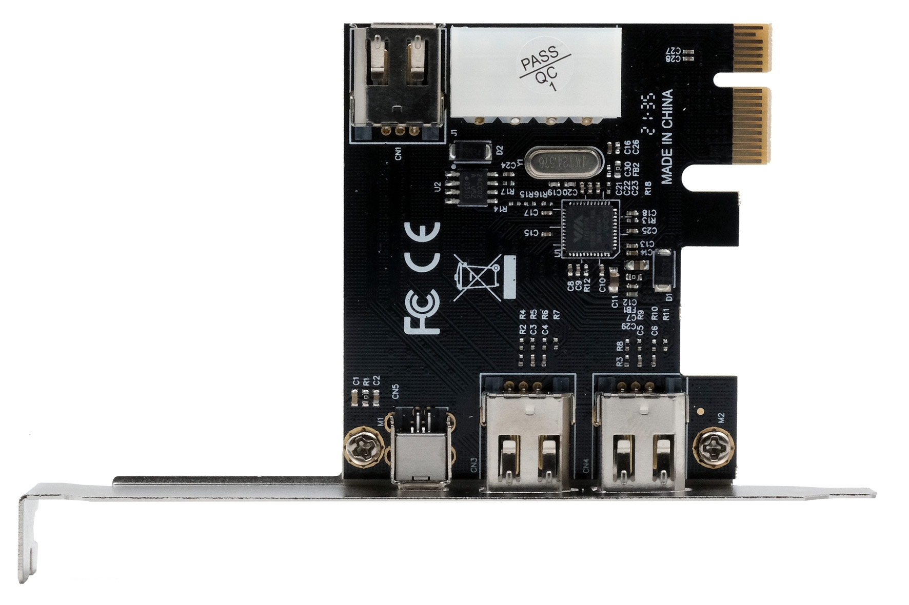 - FireWire 1394a PCIe card with three external outputs and one internal output