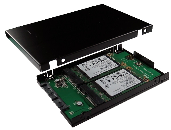 SATA3 to 2x mSATA SSD (RAID) with 2.5-inch metal frame (9.5mm)