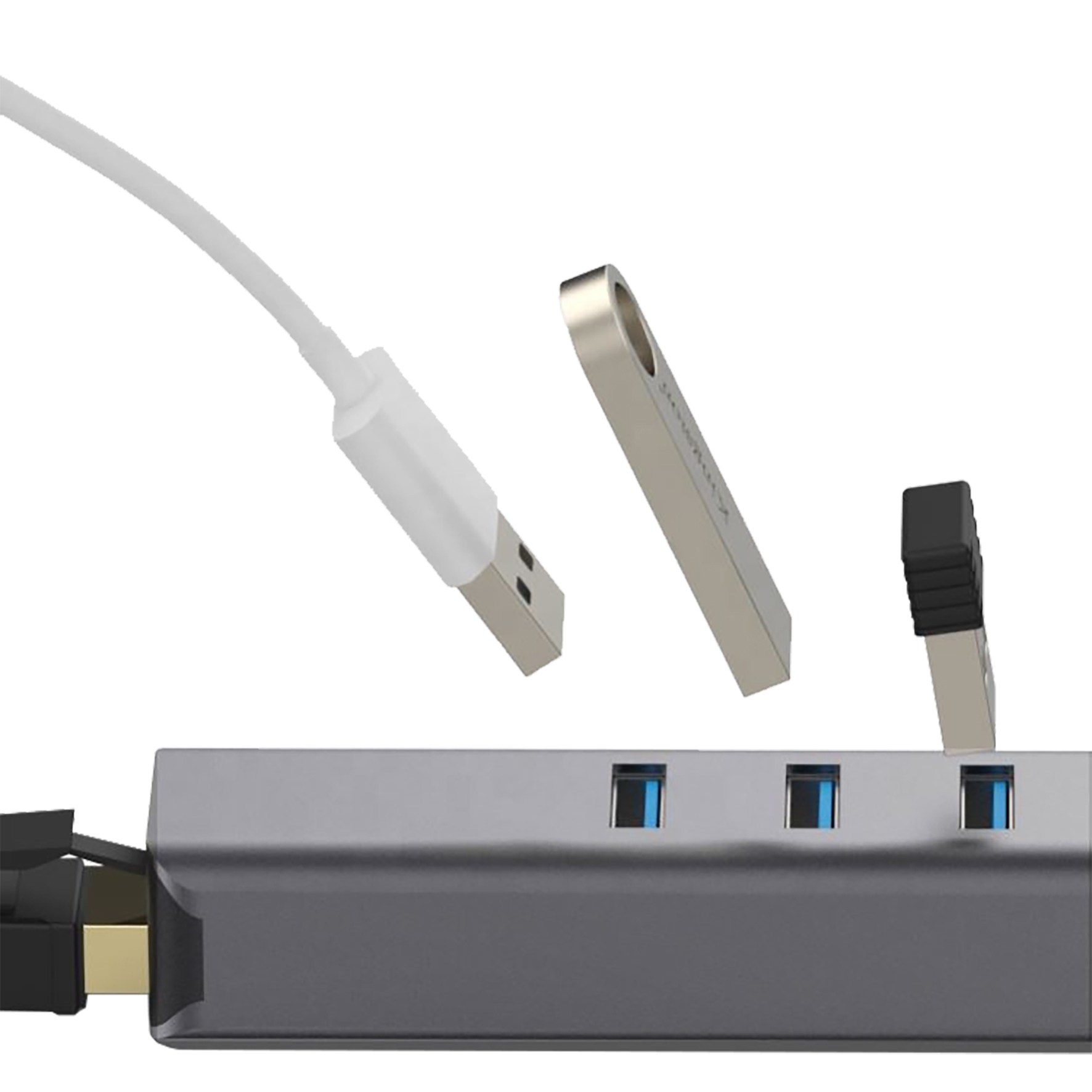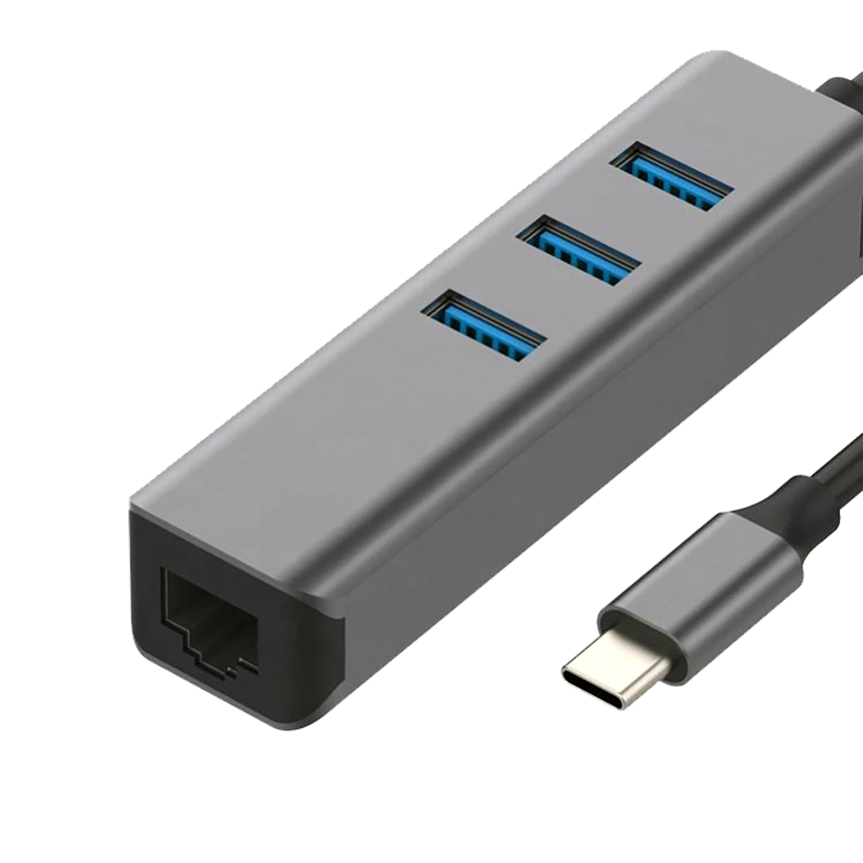 USB 3.2 Gen 1 HUB with 3x USB ports and 1x Ethernet 1Gigabit LAN (C-male)