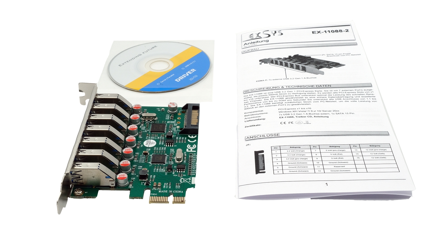 USB 3.2 Gen 1 PCIe card with 7 ports (Chipset VIA)