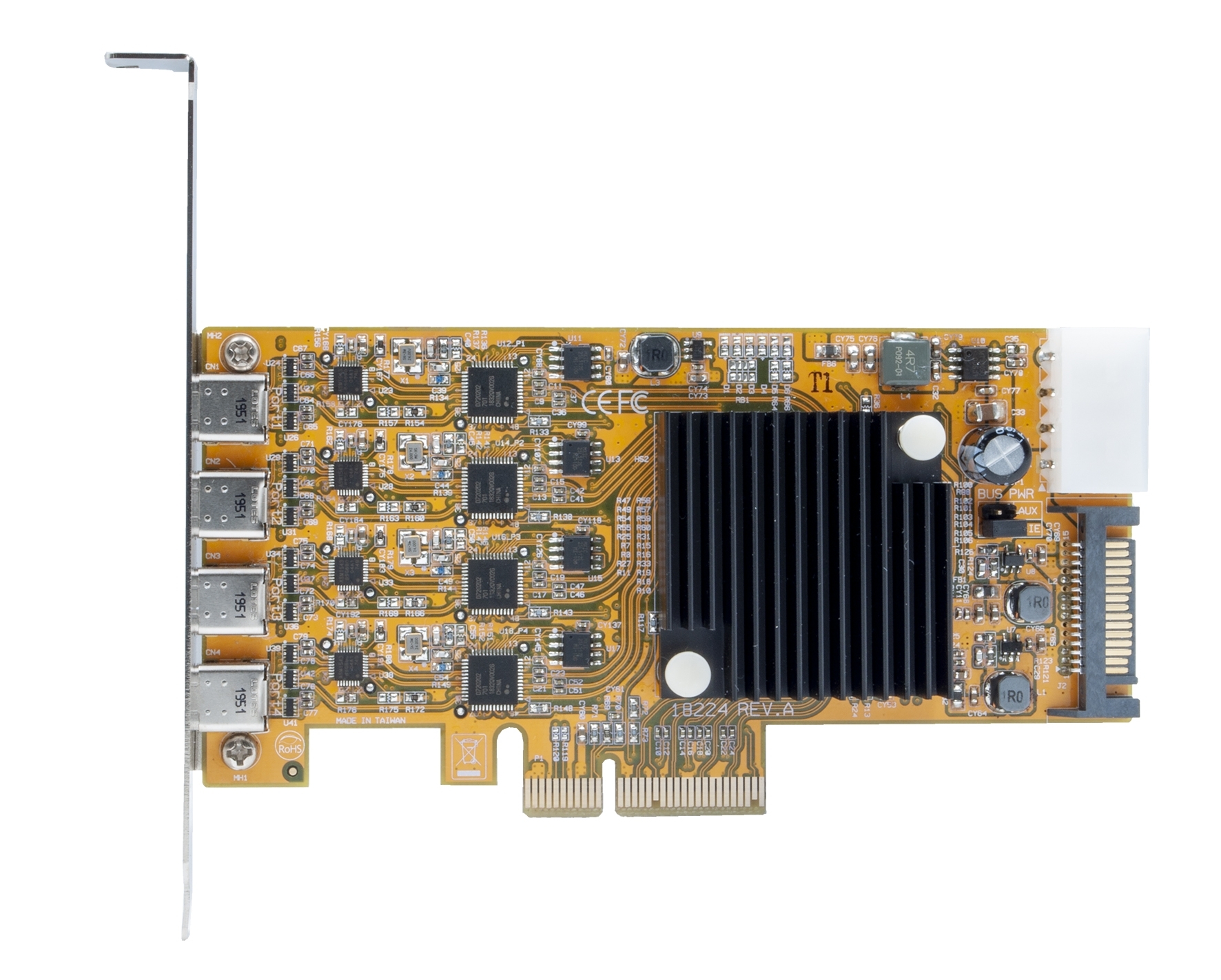 - USB 3.2 Gen 1 PCIe card with four external C-connectors