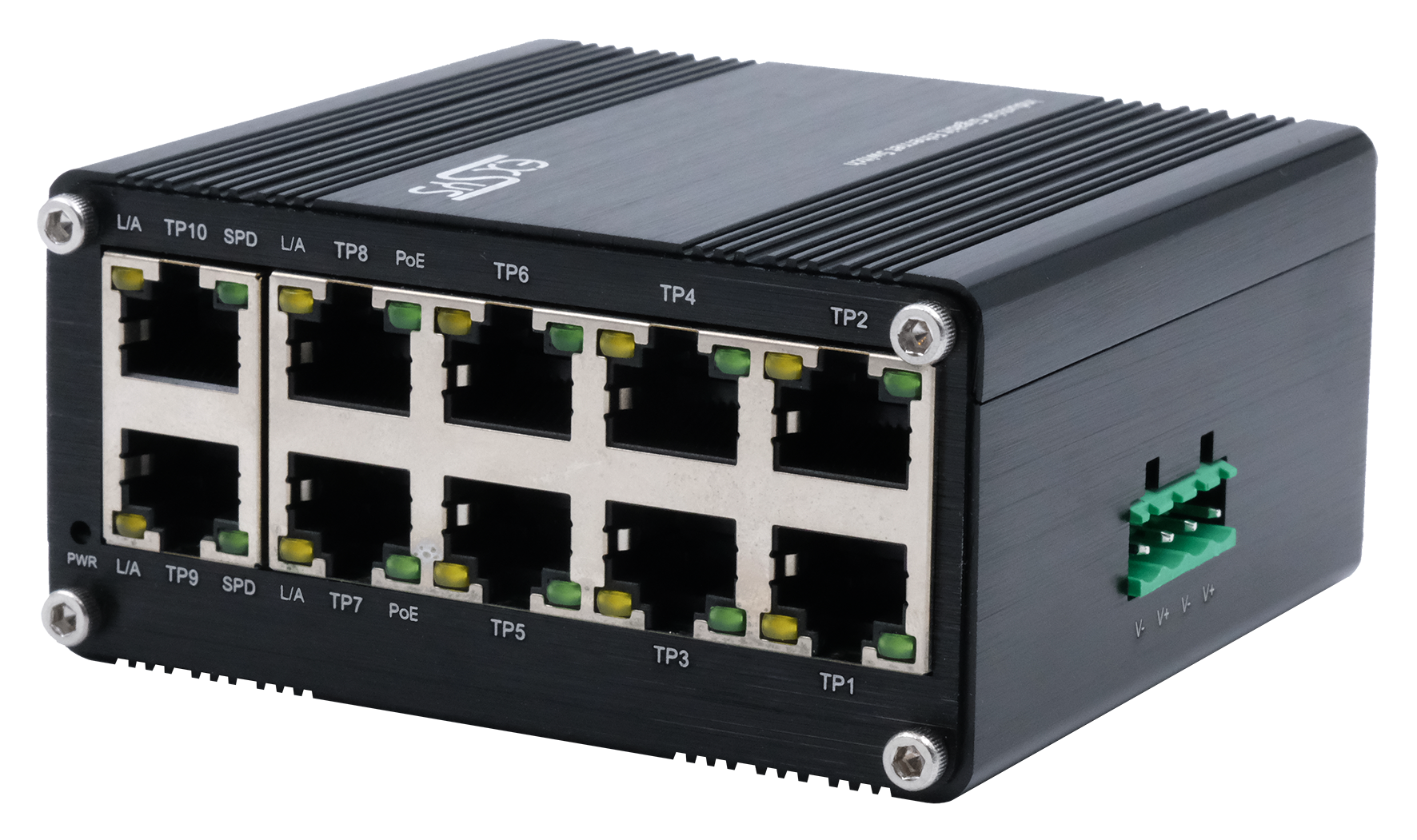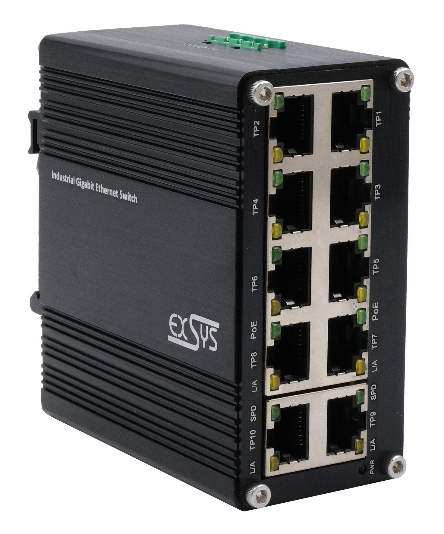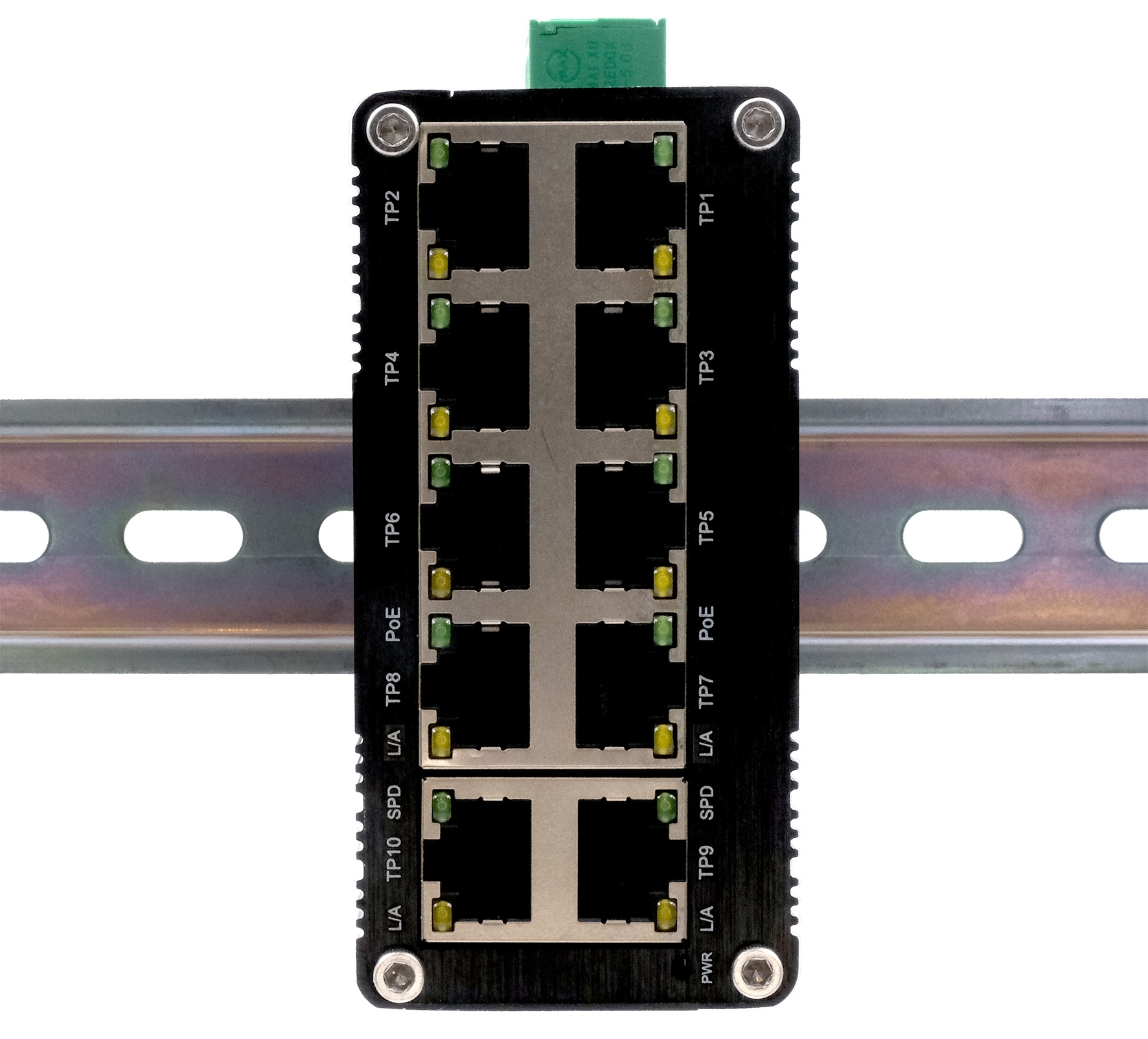 Mini 10-Port Industrial Gigabit PoE-Switch, 48-57VDC unmanaged