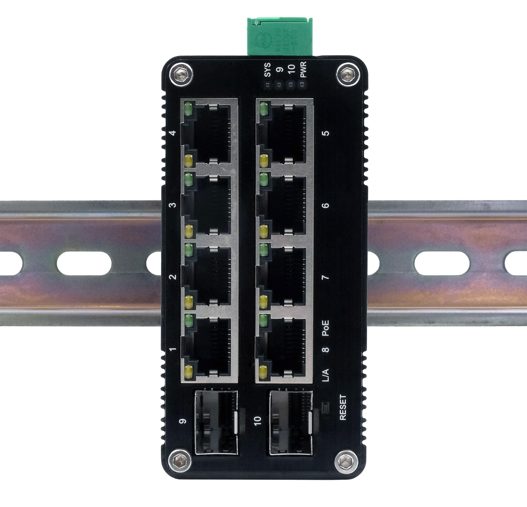 Mini 8+2-Port Industrial Gigabit SFP PoE+ Switch, Web-Managed