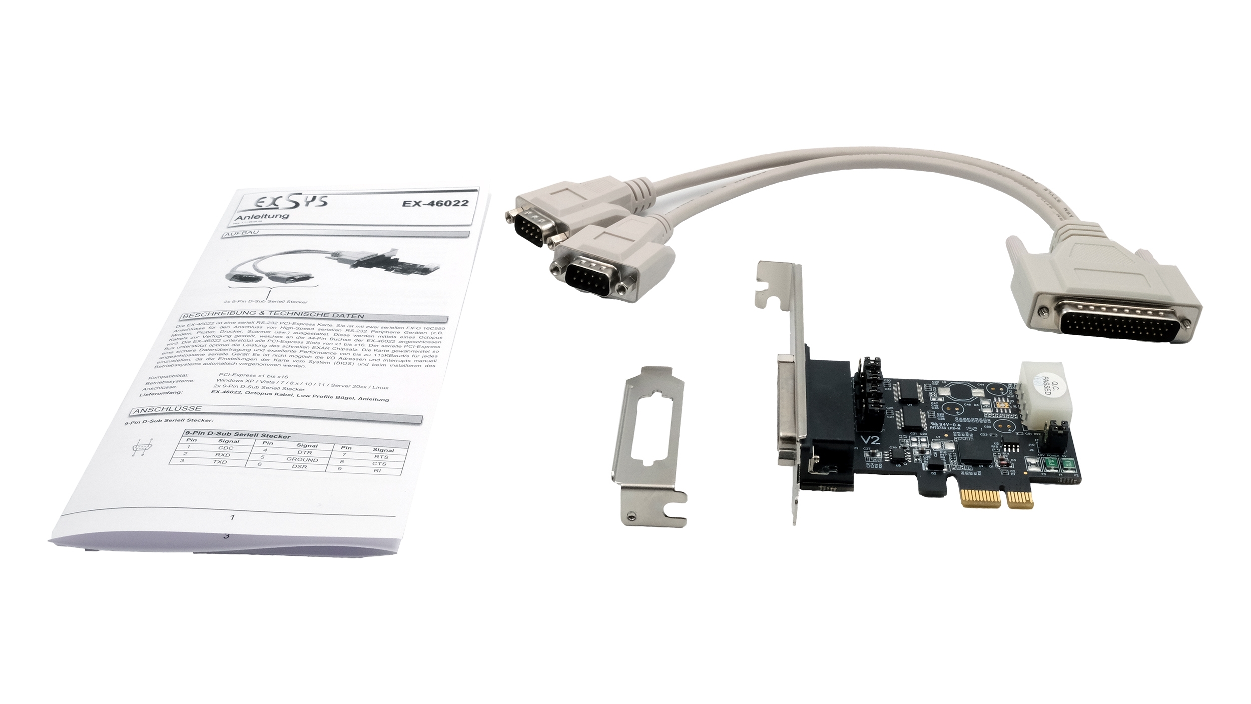 Lieferumfang: EX-46022, Octopus-Kabel, Low Profile Bügel, Handbuch