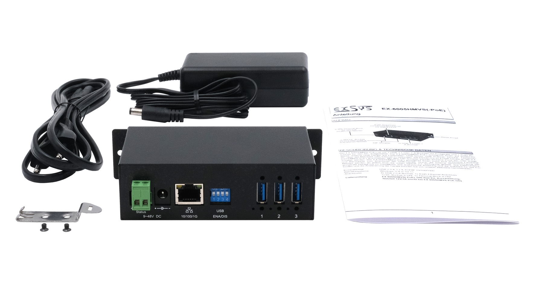 EX-6005HMVS, Netzteil 12V/3A, DIN-Rail Kit, Kurzanleitung