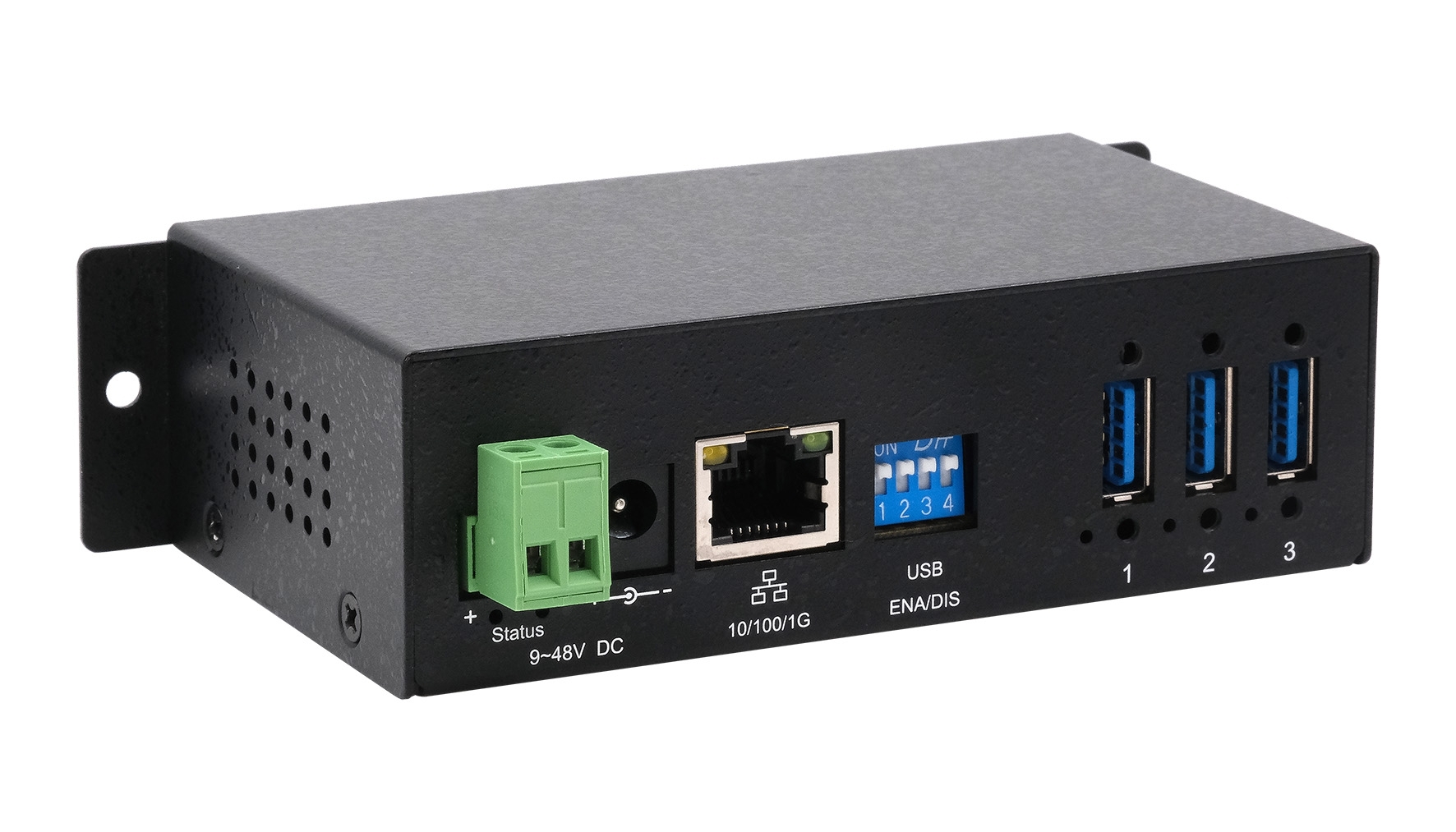 - Robustes Metallgehäuse mit Wand- und Hutschienenmontage (DIN-Rail)